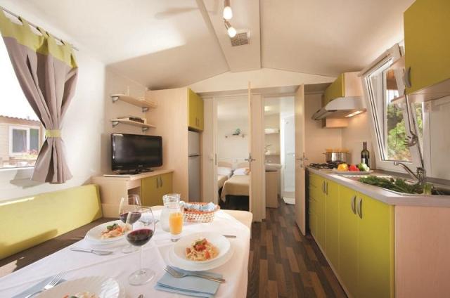 Poloha: v kempu Aminess Sirena, 1,5 km od centra města Novigrad, cca 4 km Aquapark Istralandia. Pláž: cca 300 m, oblázková, skalnatá, betonová, oceněná modrou vlajkou (nejvyšší ekologické standardy pro čisté moře a pláže), možnost zapůjčení lehátek a slunečníků na pláži (za poplatek). Bazén: 4 společné venkovní bazény (24 m², 2 s vyhřívanou vodou) pro mobilní domy Premium Sirena. Vybavení resortu: recepce, restaurace, terasa, zahrada, bary, kavárna, obchod, pekárna, směnárna, dětské hřiště, zóna pro grilování, 1 parkovací místo/mobilní dům v ceně. Ubytování: mobilní dům PREMIUM MH4+1, velikost 32 m² - 2 oddělené 2lůžkové ložnice (jedna s manželskou postelí, jedna s oddělenými lůžky), denní místnost s rozkládací pohovkou pro max 1 dítě do 11,99 let, 2 koupelny, terasa (premium village, MHPV, 74085); vždy vybavený kuchyňský kout, jídelní kout, Wi-Fi, TV/sat, zastřešená terasa se zahradním nábytkem. Internet: Wi-Fi zdarma. Stravování: vlastní. Sport a zábava: v okolí více než 500 km značených cyklostezek, sportovní centrum s víceúčelovým hřištěm, animační programy pro děti a dospělé (v sezoně), dětské hřiště, půjčovna kol, kajaků, šlapadel, minigolf, plážový volejbal, tenisové kurty, cca 4 km Aquapark Istralandia. Domácí mazlíčci: platba na recepci 15€/den (po předchozím potvrzení, pouze v mobilních domech classic). Dětská postýlka: pro děti do 3,99 let v ceně (po předchozím potvrzení). Internetová adresa: www.aminess-campsites.com Nabídka pro děti: dětské hřiště, mini klub, animační programy. Autobusová doprava: v případě zájezdu s autobusovou dopravou je odjezd autobusu z ČR v pátek a příjezd zpět do ČR v neděli. Check-in/check-out: po 15:00 hod./do 10:00 hod. Cena zahrnuje: