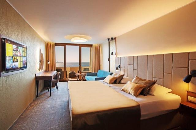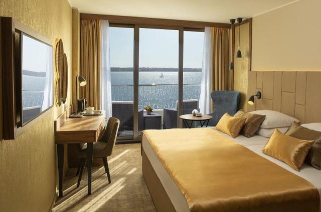(ceny již zahrnují aktuální platné slevy) Poloha: na promenádě mezi Piranem a Portoroží. Pláž: cca 50 m, oblázková, betonová, travnaté plochy, bar na pláž, možnost zapůjčení lehátek a slunečníků na pláži (za poplatek). Bazén: vnitřní bazén s vyhřívanou mořskou vodou. Vybavení: klimatizovaná recepce, centrální restaurace, restaurace Pečina, restaurace Sunset, terasa Grand Garden, kavárna Grand Café a Cocktail Lounge, Paradise Spa Wellness (krytý bazén s mořskou vodou (mimo provoz v červenci a srpnu), úschovna kol, nabíjecí stanice pro elektro automobily, venkovní parkování v ceně, venkovní parkování v ceně, garážové parkování v hotelu Histrion za poplatek 10€/den (platba na recepci). Ubytování: 2lůžkové pokoje, sprcha/WC, TV/sat, klimatizace, balkon, mořská strana (deluxe, 88653); 2lůžkové pokoje, sprcha/WC, TV/sat, klimatizace, balkon, mořská strana, s možností přistýlky pro dítě do 11,99 let (deluxe, family, 88654); 2lůžkové pokoje, sprcha/WC, TV/sat, klimatizace, balkon, mořská strana, s možností 2 přistýlek pro 2 děti do 11,99 let (deluxe, family, 88655), 2lůžkové pokoje, sprcha/WC, TV/sat, klimatizace, balkon, mořská strana (sgluse, deluxe, 88652); 2lůžkové pokoje, sprcha/WC, TV/sat, klimatizace, balkon, mořská strana, s možností přistýlky pro dítě do 11,99 let (suite, 88708); vždy minibar, vysoušeč vlasů, sejf, Wi-Fi. Poznámka: přistýlka v pokoji 1/2+1 nebo 1/2+2 má rozměr 80x190 cm nebo 90x190 cm. Internet: Wi-Fi zdarma. Stravování: polopenze - snídaně a večeře formou bufetu. Sport a zábava: lázeňské wellness centrum Paradise Spa (sauna, fitness, jacuzzi, masáže, kosmetické procedury, krytý bazén s vyhřívanou mořskou vodou, animační programy v červenci a srpnu. Domácí mazlíčci: platba na recepci 25€/den (po předchozím potvrzení), psi nemohou do restauraci a na pláž. Dětská postýlka: platba na recepci 10€/den (po předchozím potvrzení). Internetová adresa: www.hoteli-bernardin.si Nabídka pro děti: dětské hřiště na pláži, kryté i venkovní dětské bazény v aquaparku Termaris v hotelu Histrion; dětský animační program/miniklub na pláži (během letních prázdnin). Check-in/check-out: po 14.00 hod./do 10.00 hod. Cena zahrnuje: