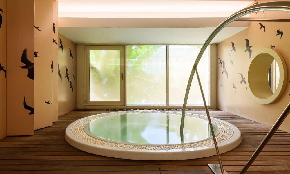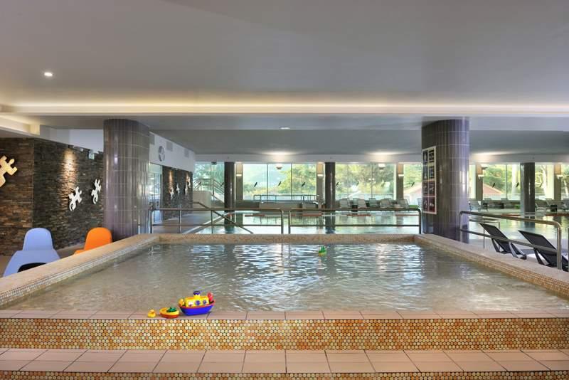 Bazény s mořskou vodou • Od poloviny dubna do října vás zveme do našeho venkovního bazénu o rozloze 114 m², kde teplota vody dosahuje 26 až 28˚C. V chladnějších dnech si můžete užít náš krytý bazén o rozloze 432 m², který je naplněn mořskou vodou vyhřívanou na 32˚C. K dispozici je také masážní bazén o rozloze 59 m² a dětský bazén.
